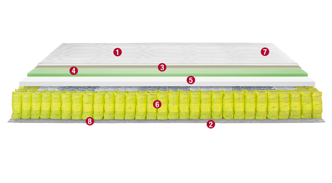 La sua struttura interna è costituita da un innovativo molleggio indipendente che, non necessitando di supporti perimetrali in Touch Foam®, consente un ricircolo d’aria totale, che non ha eguali.